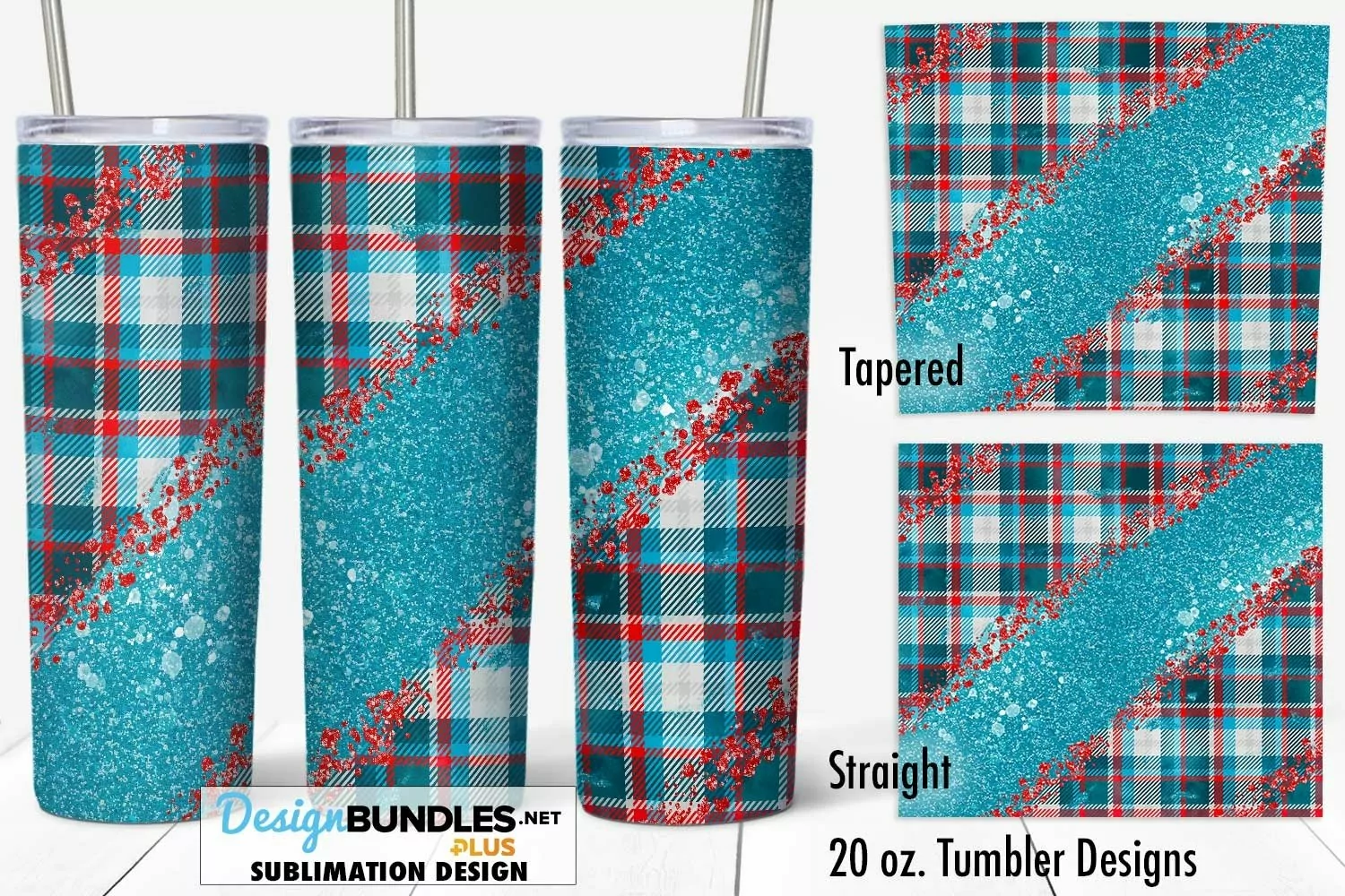 Americana Sublimation Tumbler Wrap | Plaid Glitter Red Blue example image 1