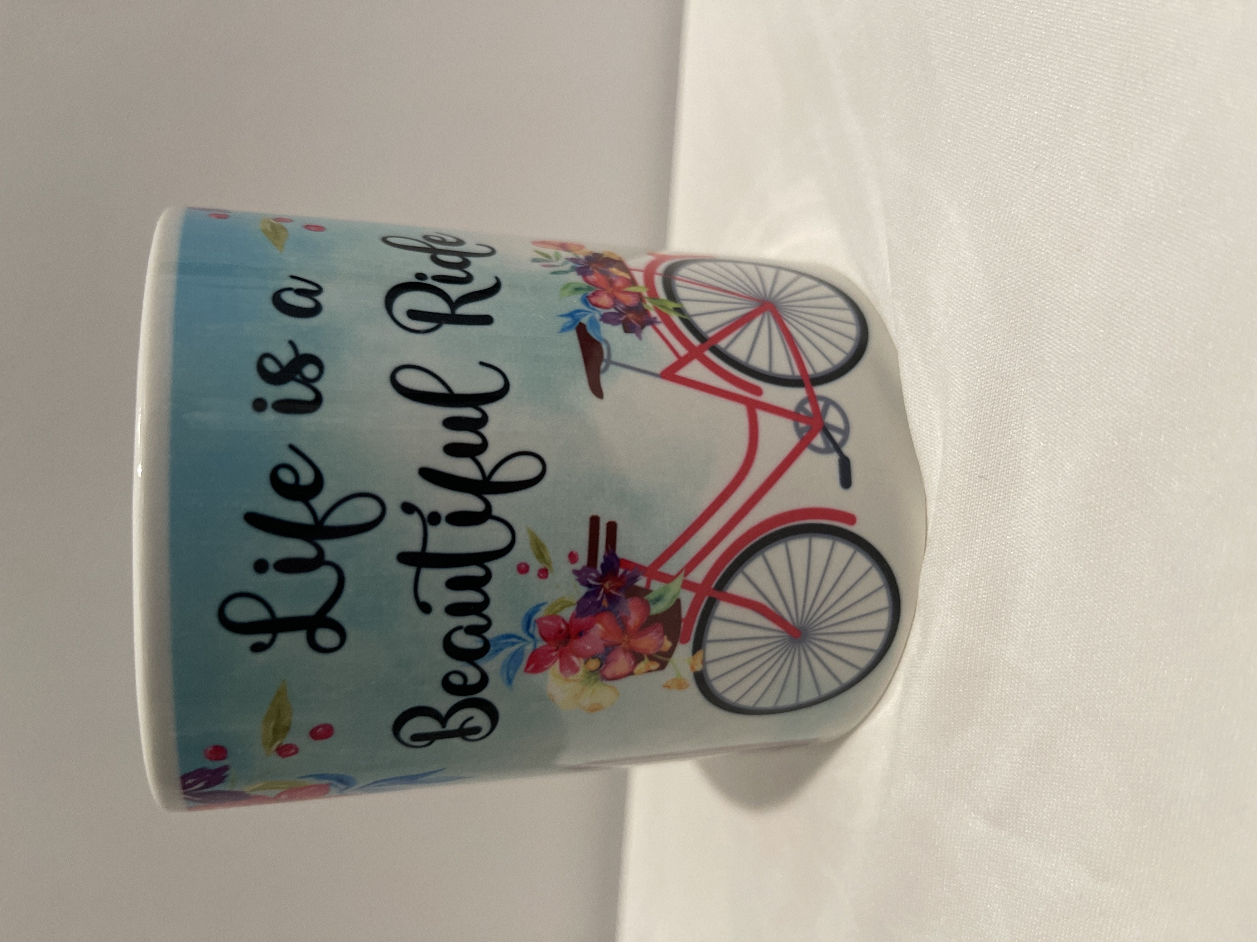 Life Is Beautiful Ride Sublimation Mug Wrap | Bicycle Flower