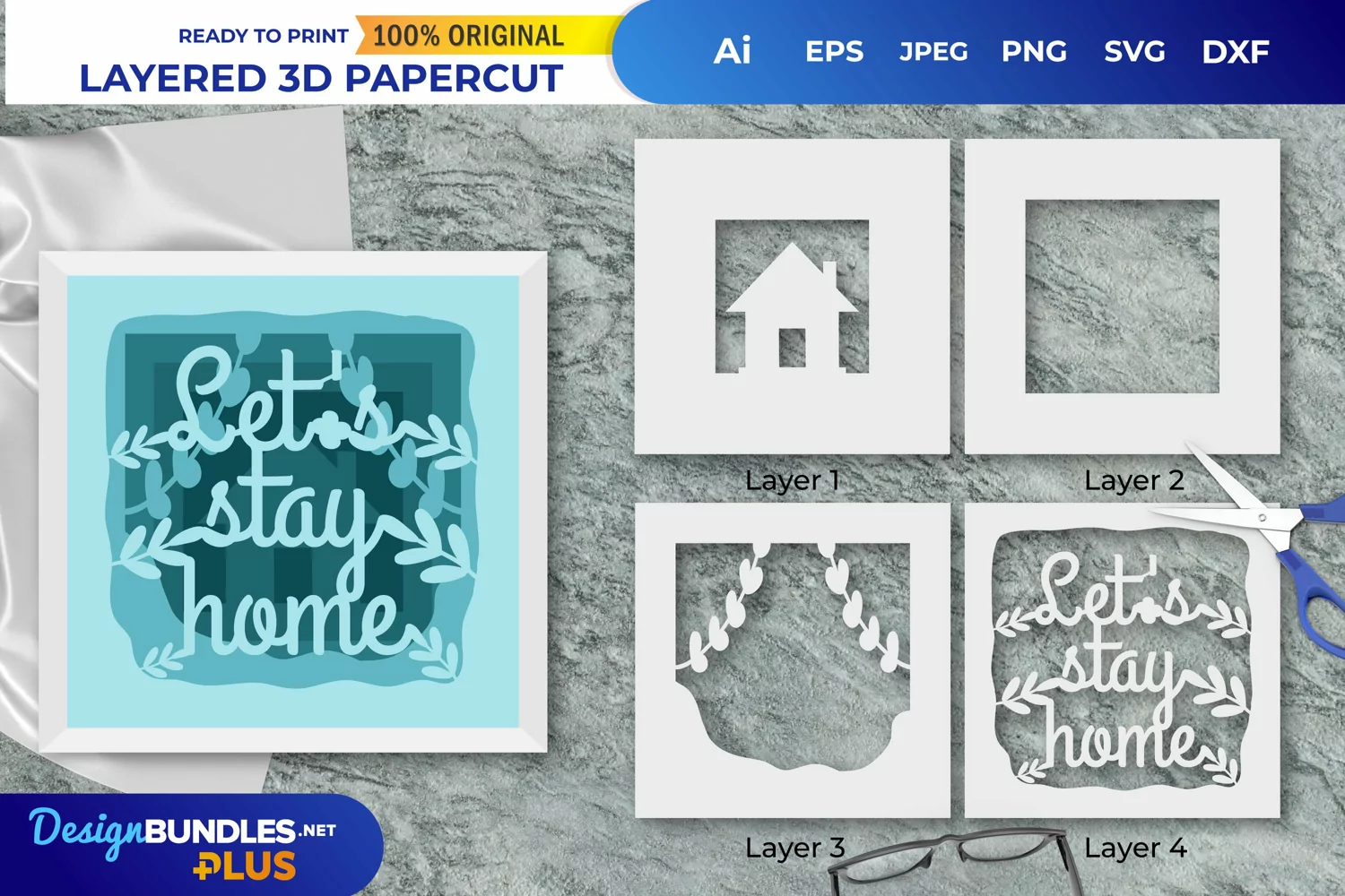 Let's Stay Home Layered Papercut 3D