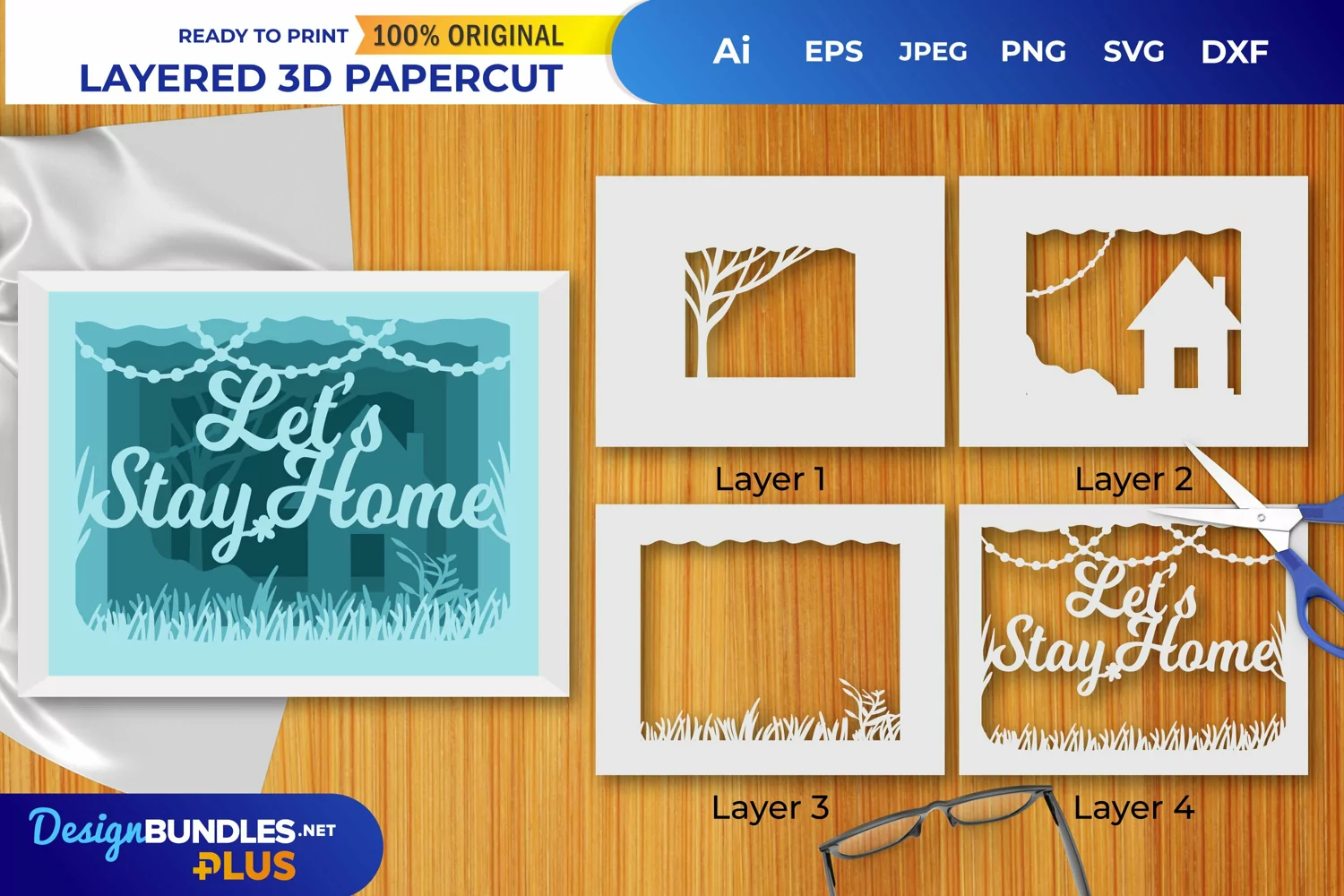 Let's Stay Home Layered Papercut 3D