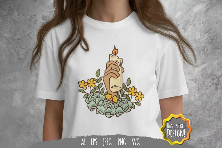 Floral Hand Holding Candle SVG