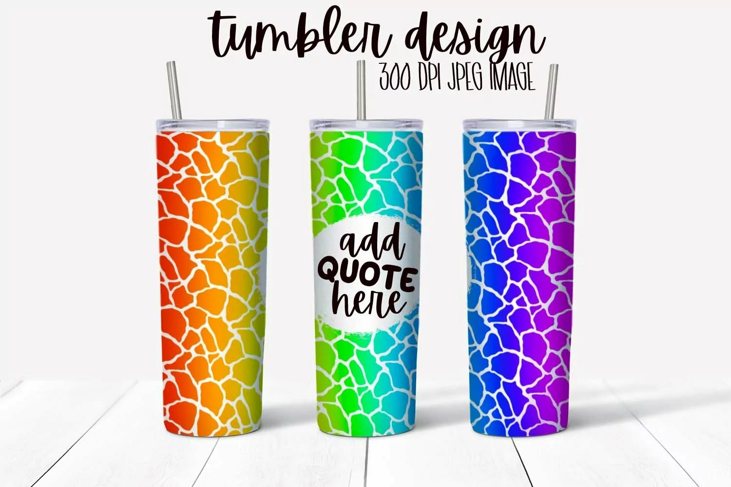 Rainbow Giraffe Print Tumbler Wrap Design With Quote Space