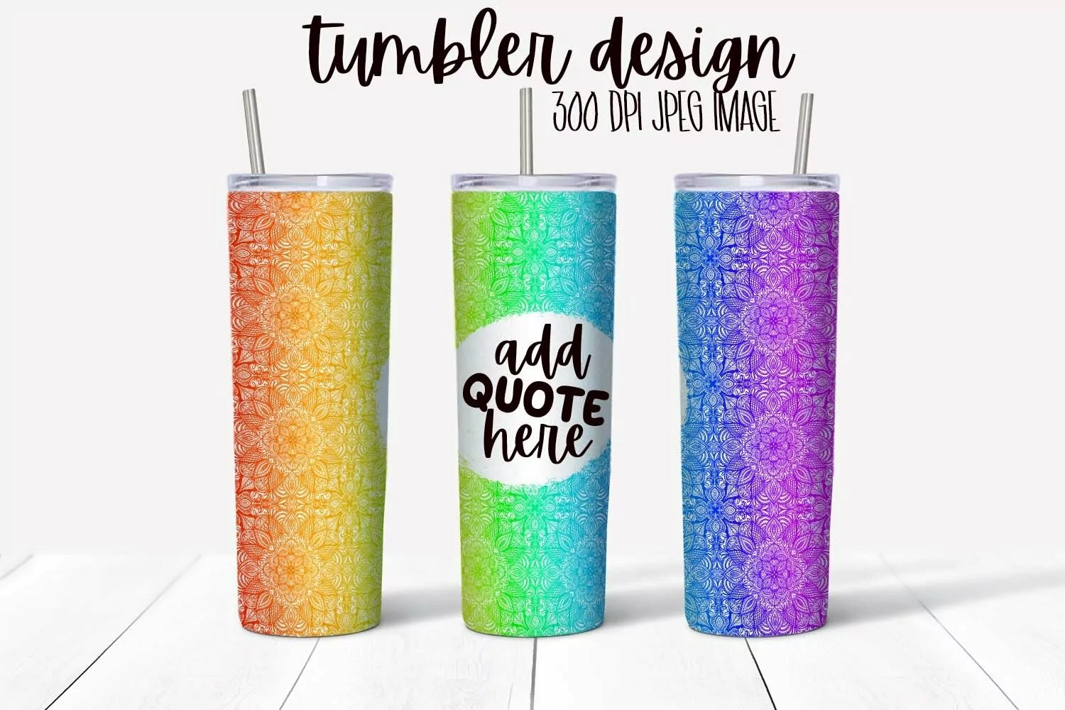 Mandala Rainbow Tumbler Wrap Design With Blank Space