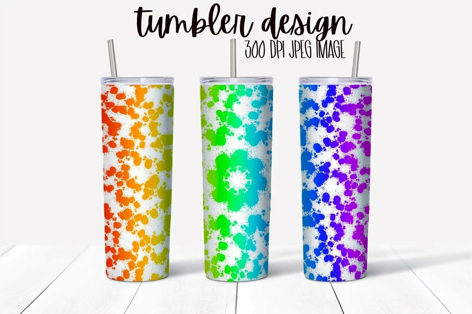Rainbow Splatters Tumbler Wrap Design With Blank Space