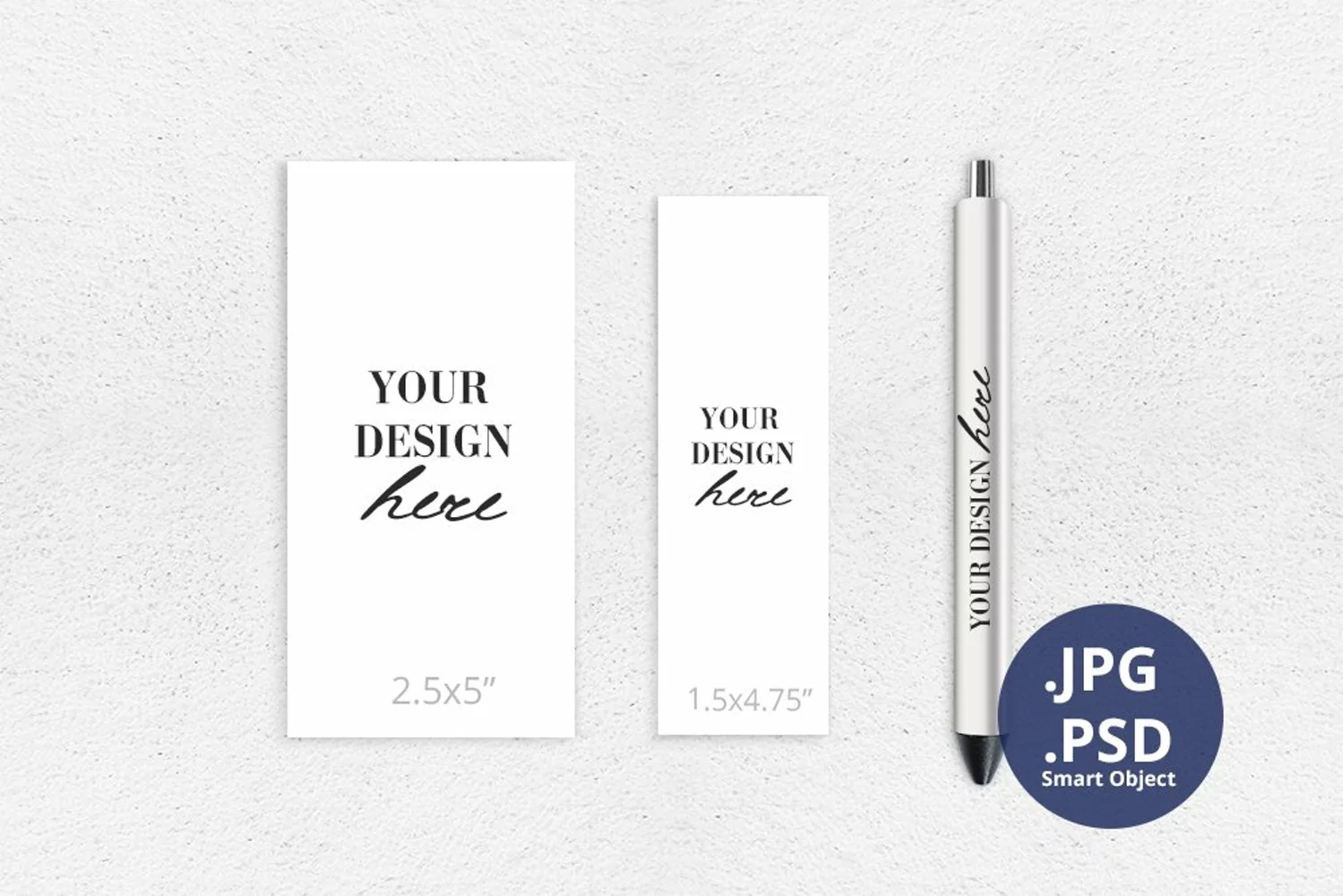 Want to show the sizes of your sublimation pen designs? Let this Epoxy Pen Mockup & 2 Design Samples Mockup - 1.5x4.75", 2.5x5" make your day!
