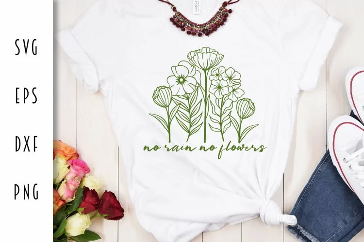 Flower Svg Inspirational Cut File Floral Cut File Flower Cut Files Motivational Sayings No Rain No Flowers Flower Laurel Svg Inspiring Cut Files Motivating Text Svg Flowers And Phrases