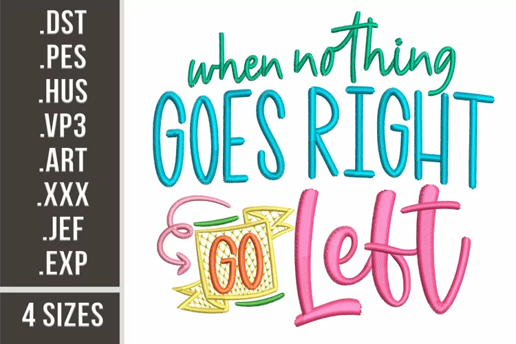 When Nothing Goes Right Go Left | Embroidery Design example image 1