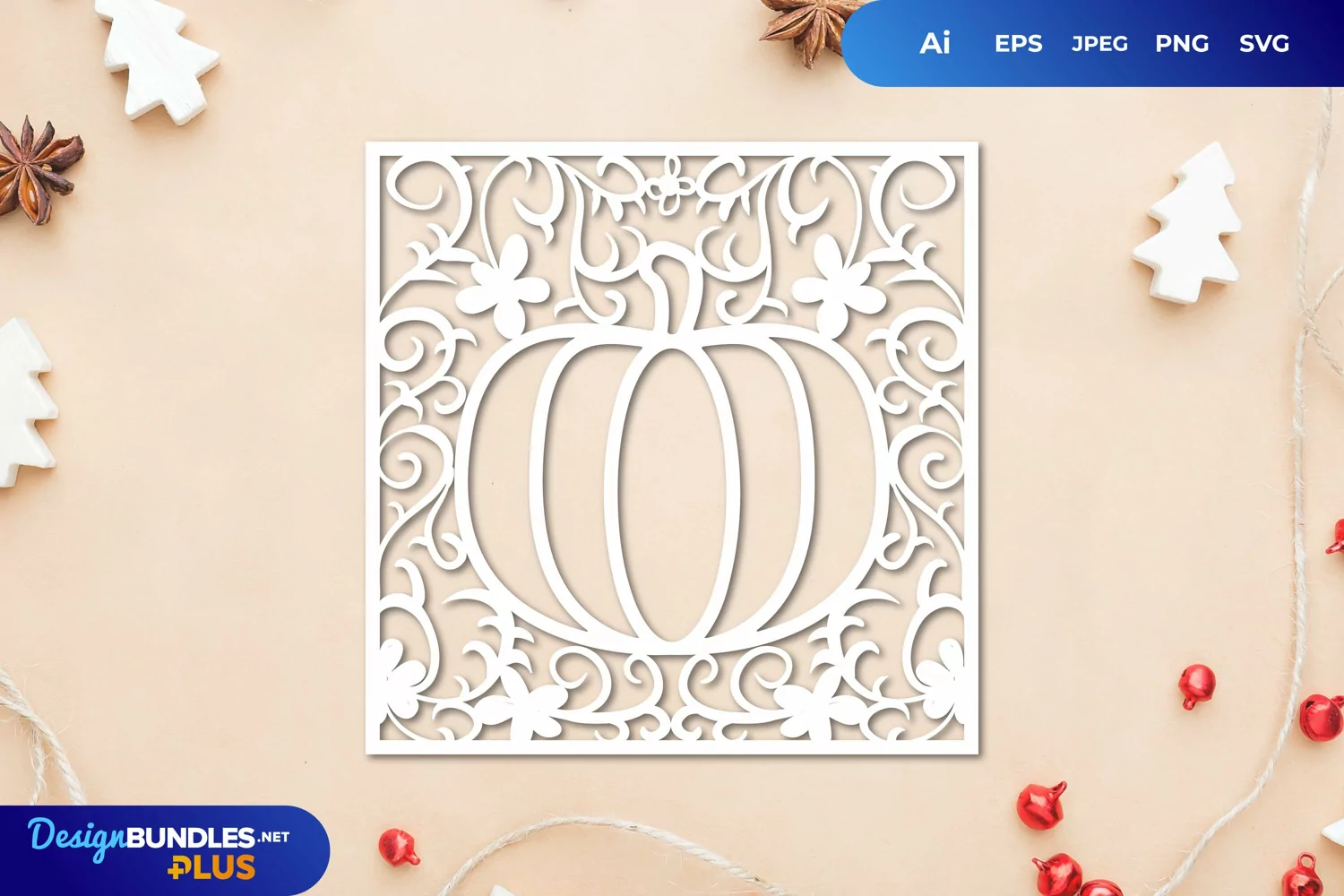 Floral Pumpkin Shape Frame Papercut