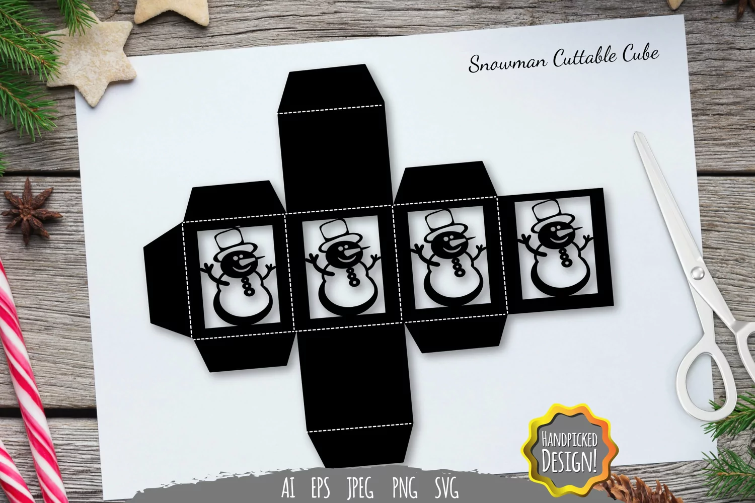 Snowman Cuttable Cube Favor Box SVG