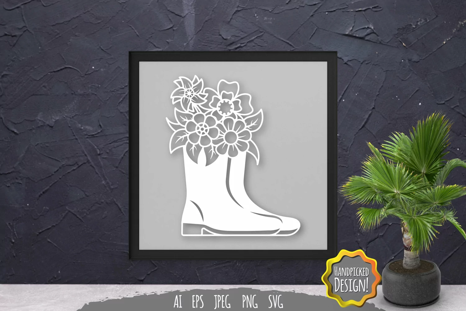 Rubber Boots with Flower Papercut