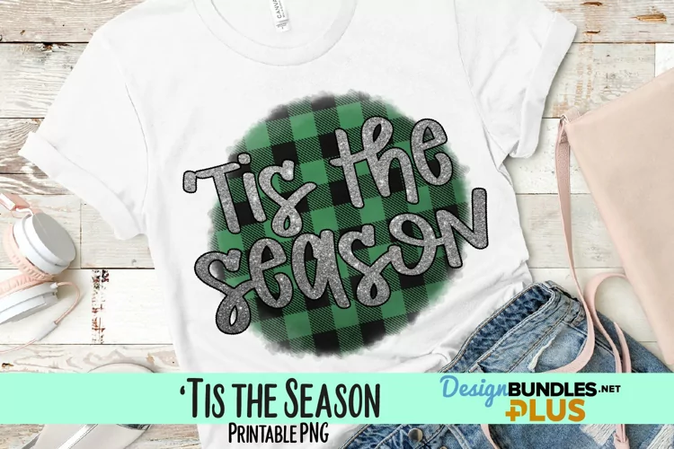 Hand Drawn Christmas Printable Season Glitter Plaid Sublimation Tis The Season