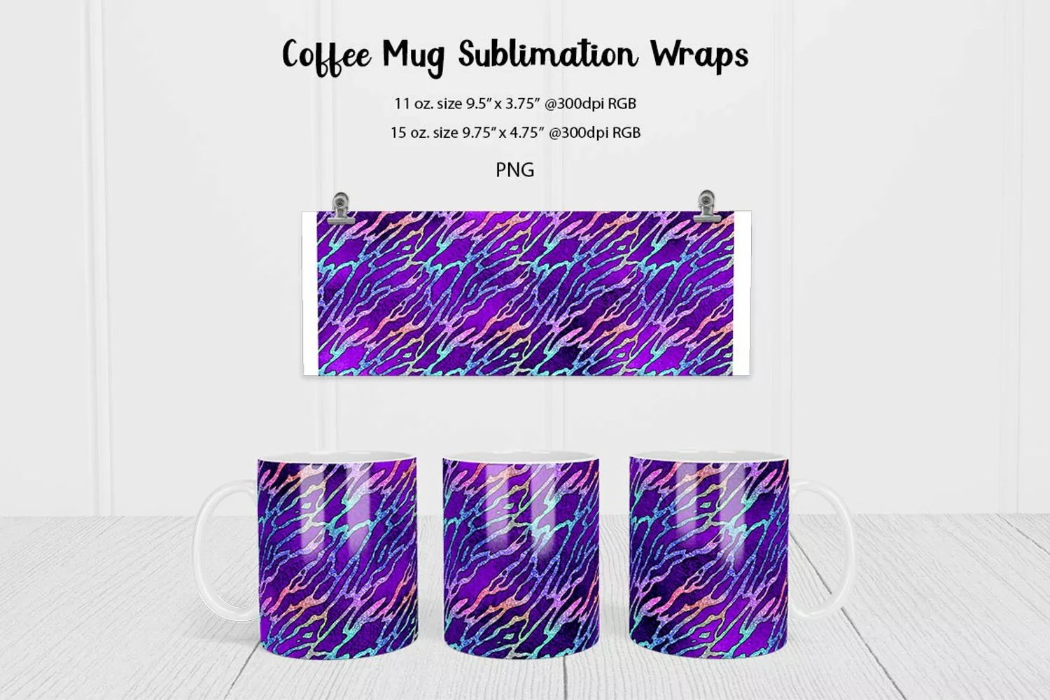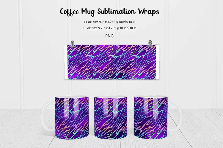 Purple tiger print design, for 11 oz and 15 oz mug sublimation wraps