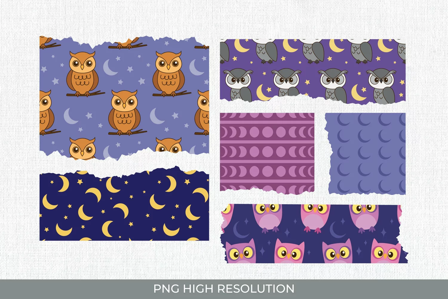 Owl and Moon Pattern Torn Paper - Scrapbooking PNG