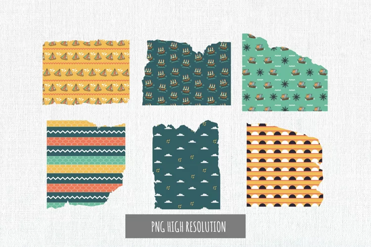 Retro Ship and Boat Seamless Pattern Torn Paper