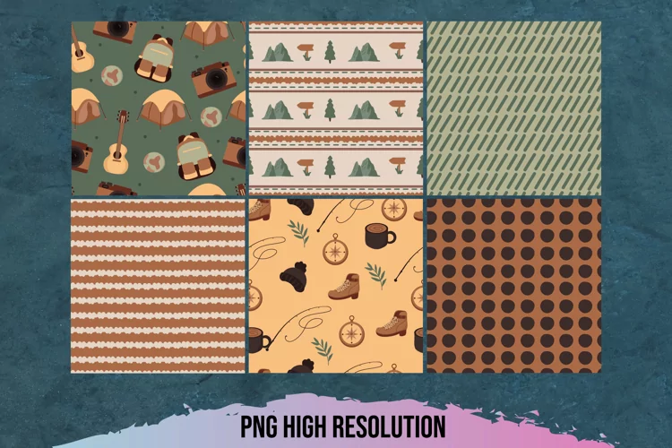 Hand Drawn Camping Seamless Pattern Paper Pack