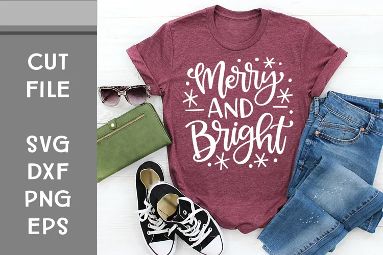 This is a hand lettered cut file. It reads, "Merry and Bright."