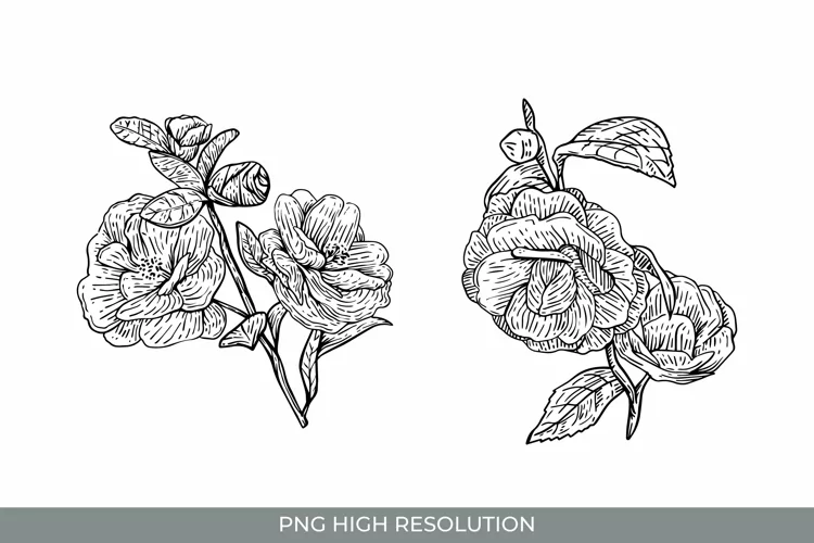 Hand Drawn Camellia Flowers Clipart