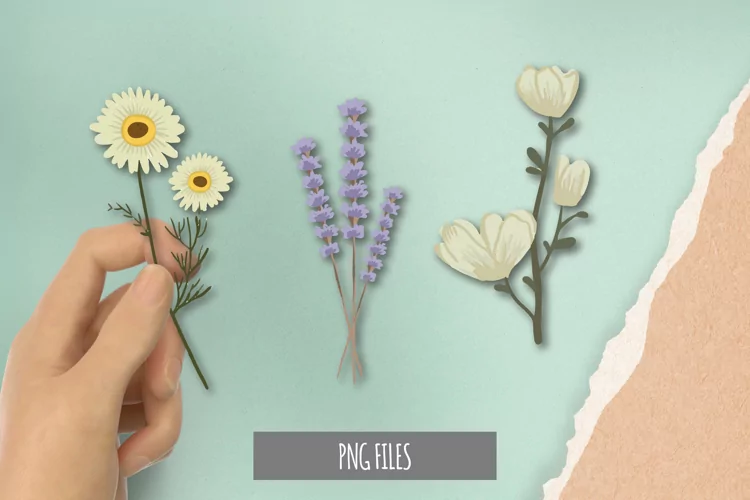 Set of Wild Dry Pressed Flower Clipart example image 1