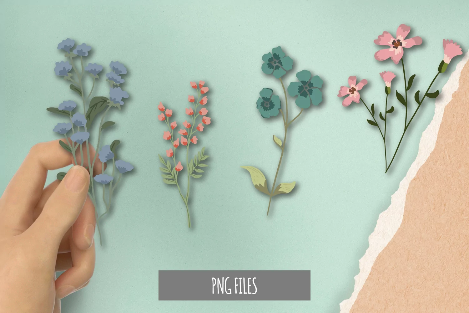 Set of Wild Dry Pressed Flower Clipart