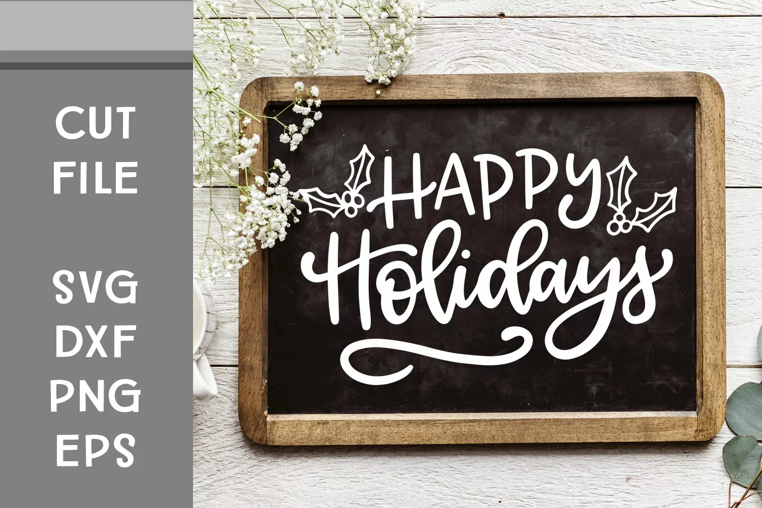 This is a hand lettered cut file. It reads, "Happy Holidays."