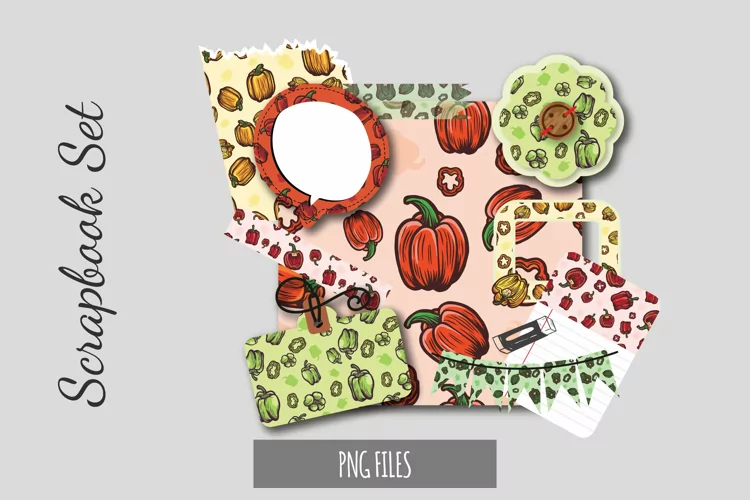 Vintage Paprika Seamless Pattern - Scrapbooking Set