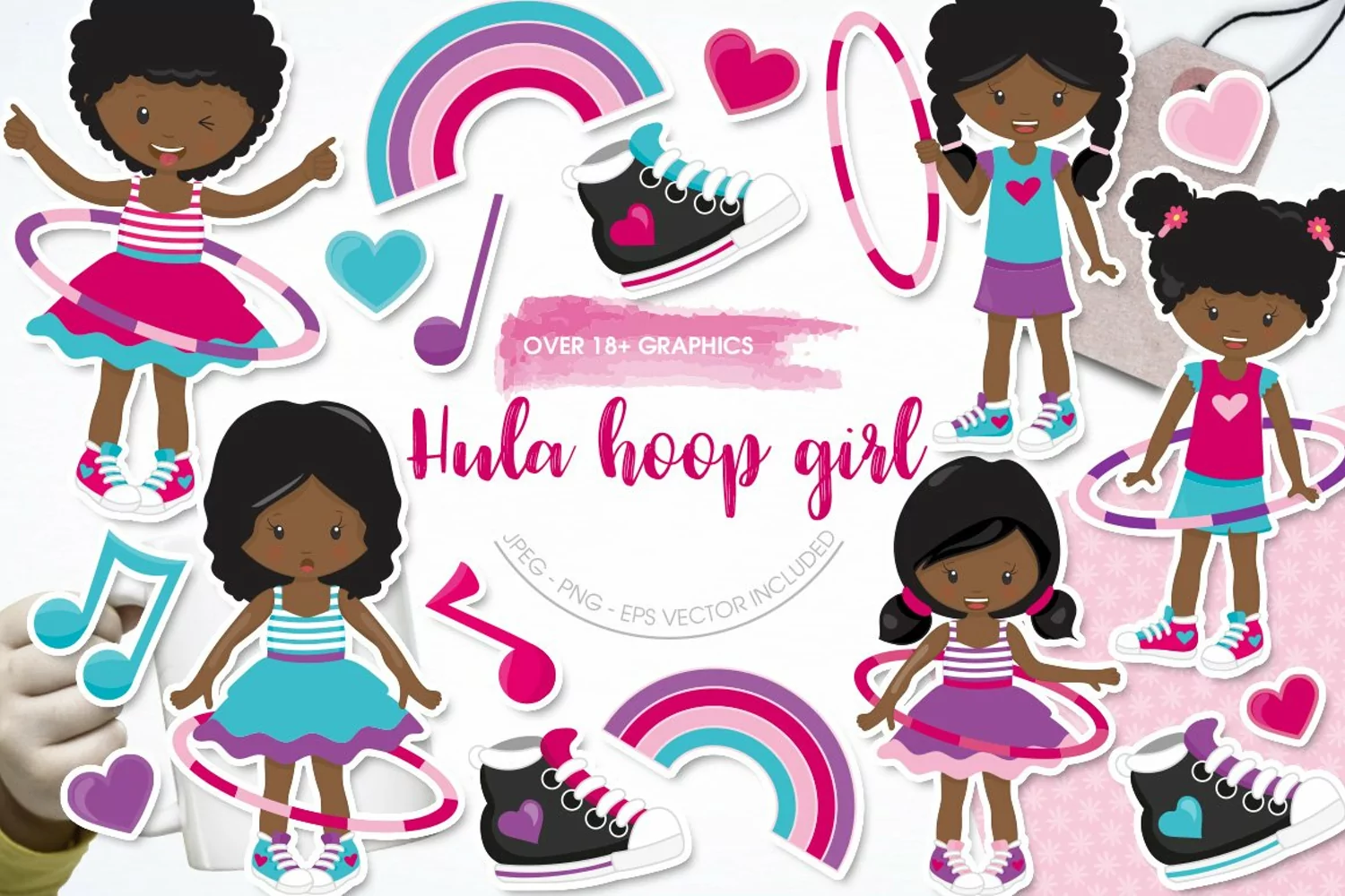 Hula hoop girl designs, can be used for invitations, home decoration , gift cards, kids room decoration, parties, scrapbooking and more.