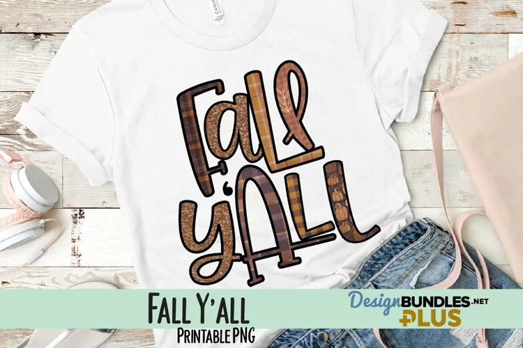 Lettering Autumn Fall Printable Glitter Plaid Sublimation Yall Y'all