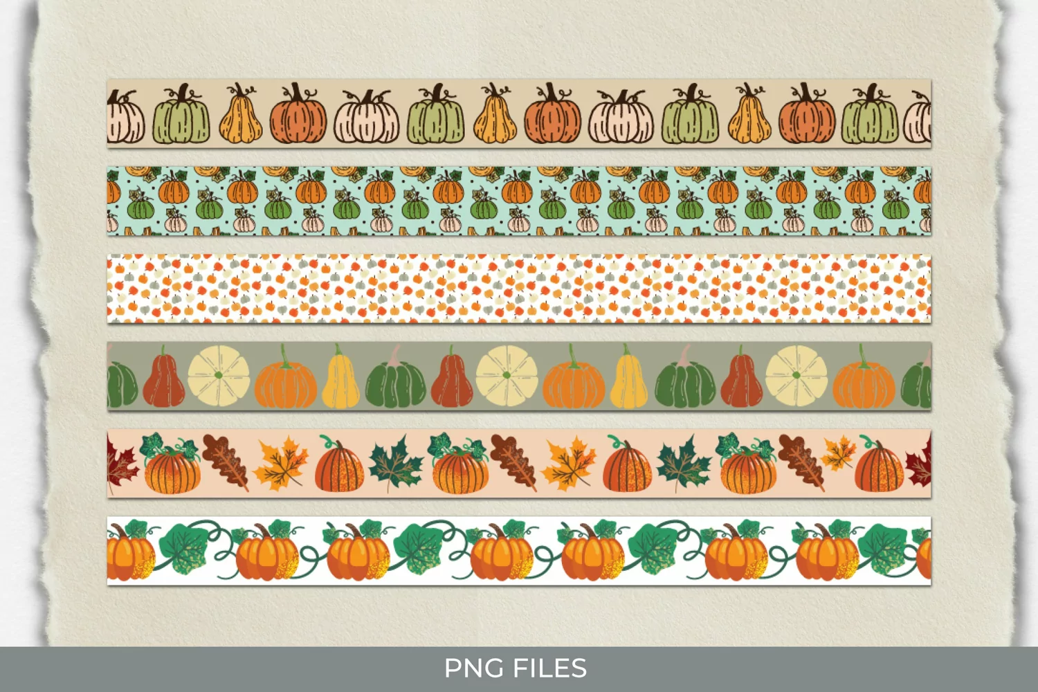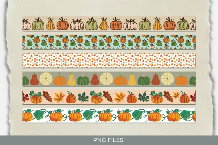 Autumn Leaves and Pumpkin Seamless Pattern Strips