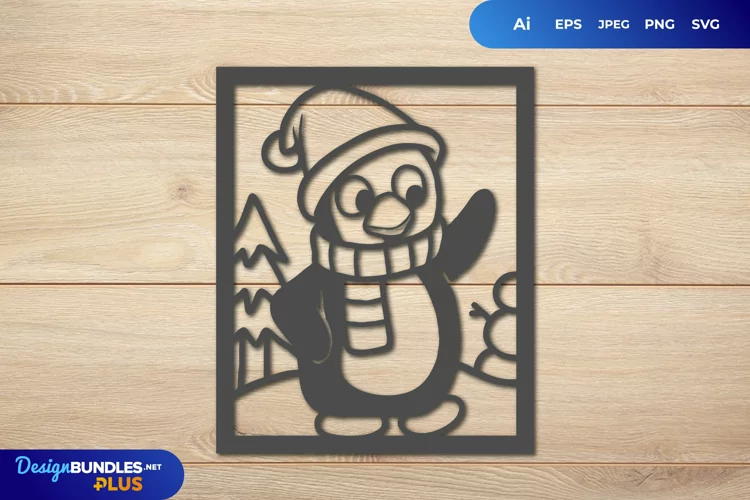 Penguin Wearing Christmas Outfit Papercut SVG