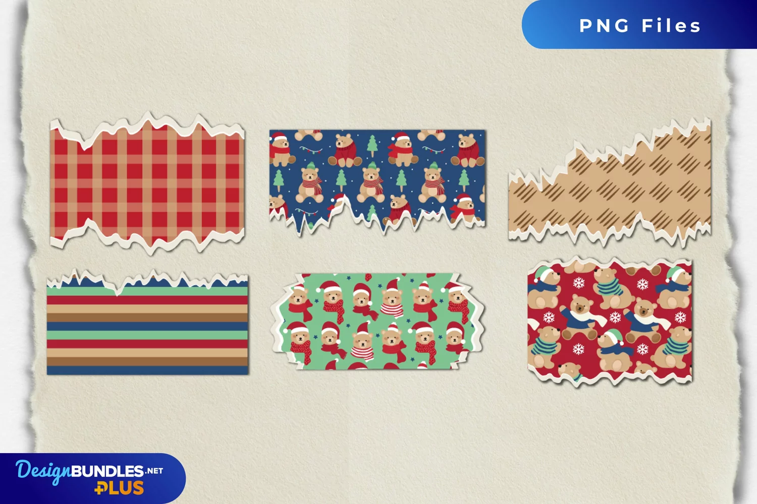 Cute Christmas Teddy Torn Paper - Scrapbooking PNG
