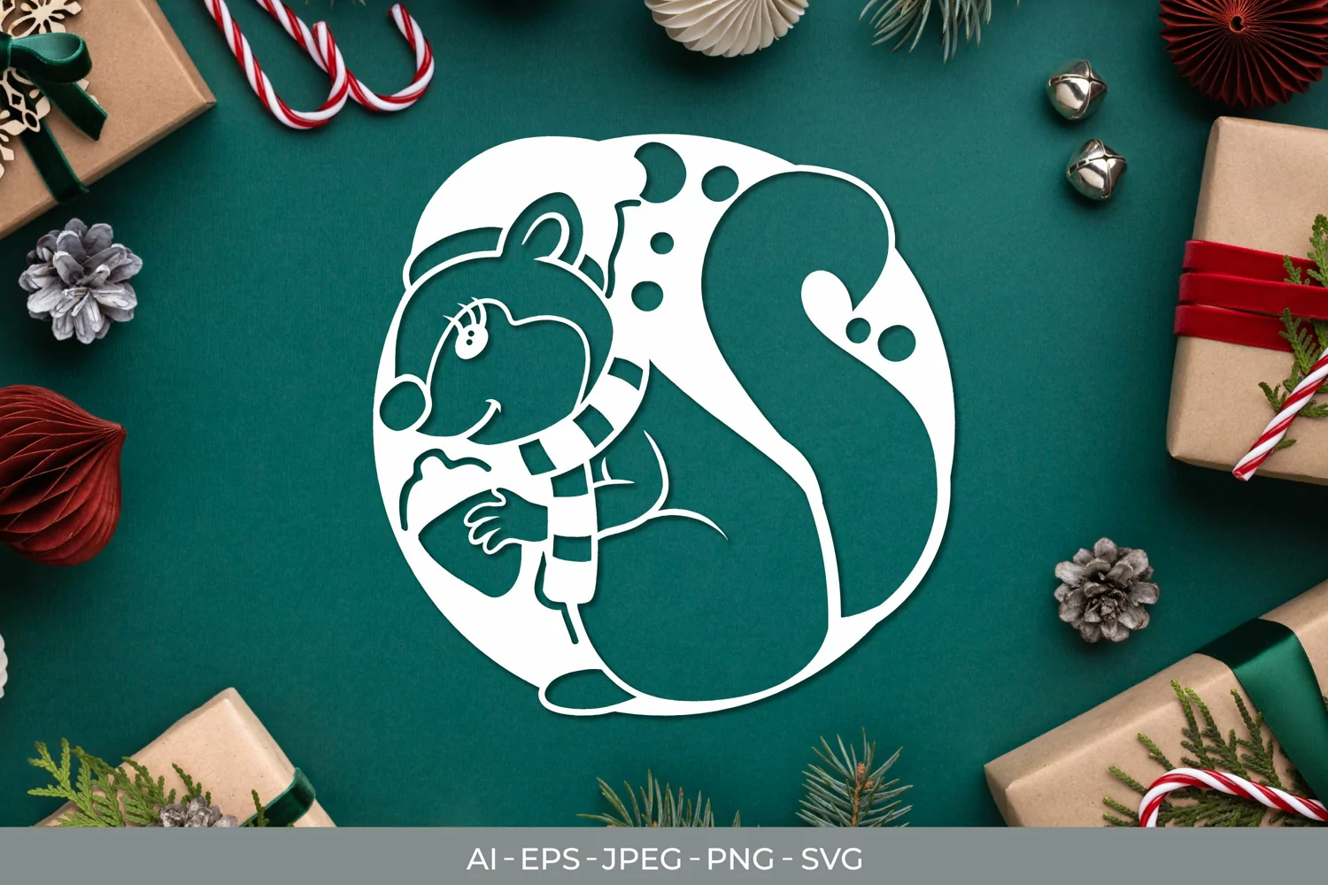 Papercut Squirrel Wearing Christmas Outfit