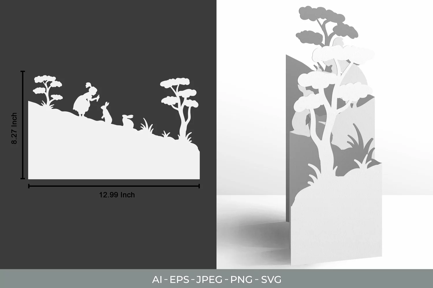 This folding papercut design can be used for multiple purposes. You can show this in kids bedroom as a decoration on the rack, on book as a simple pop up craft. How about the card for birthday party or greeting card for kids.