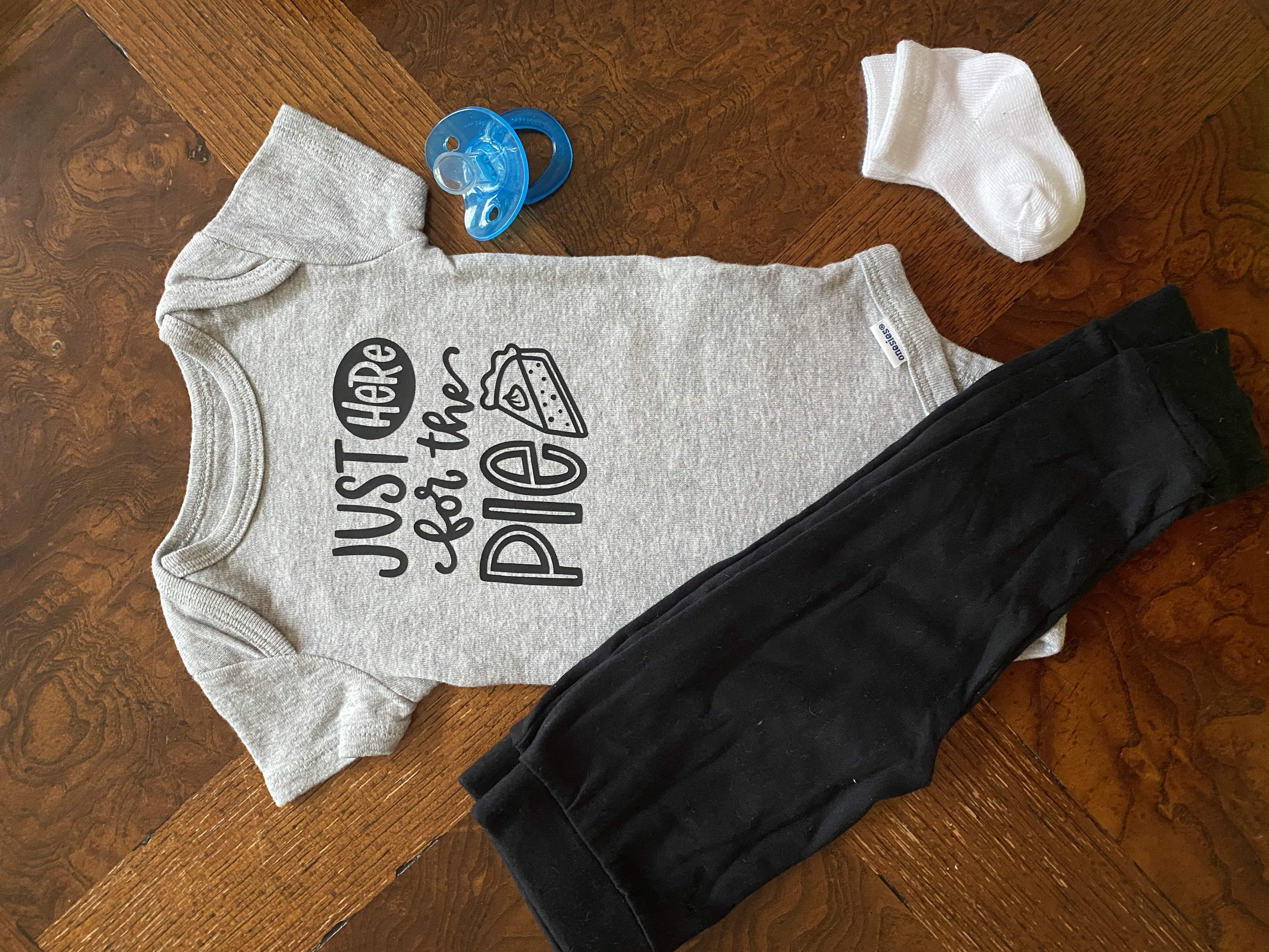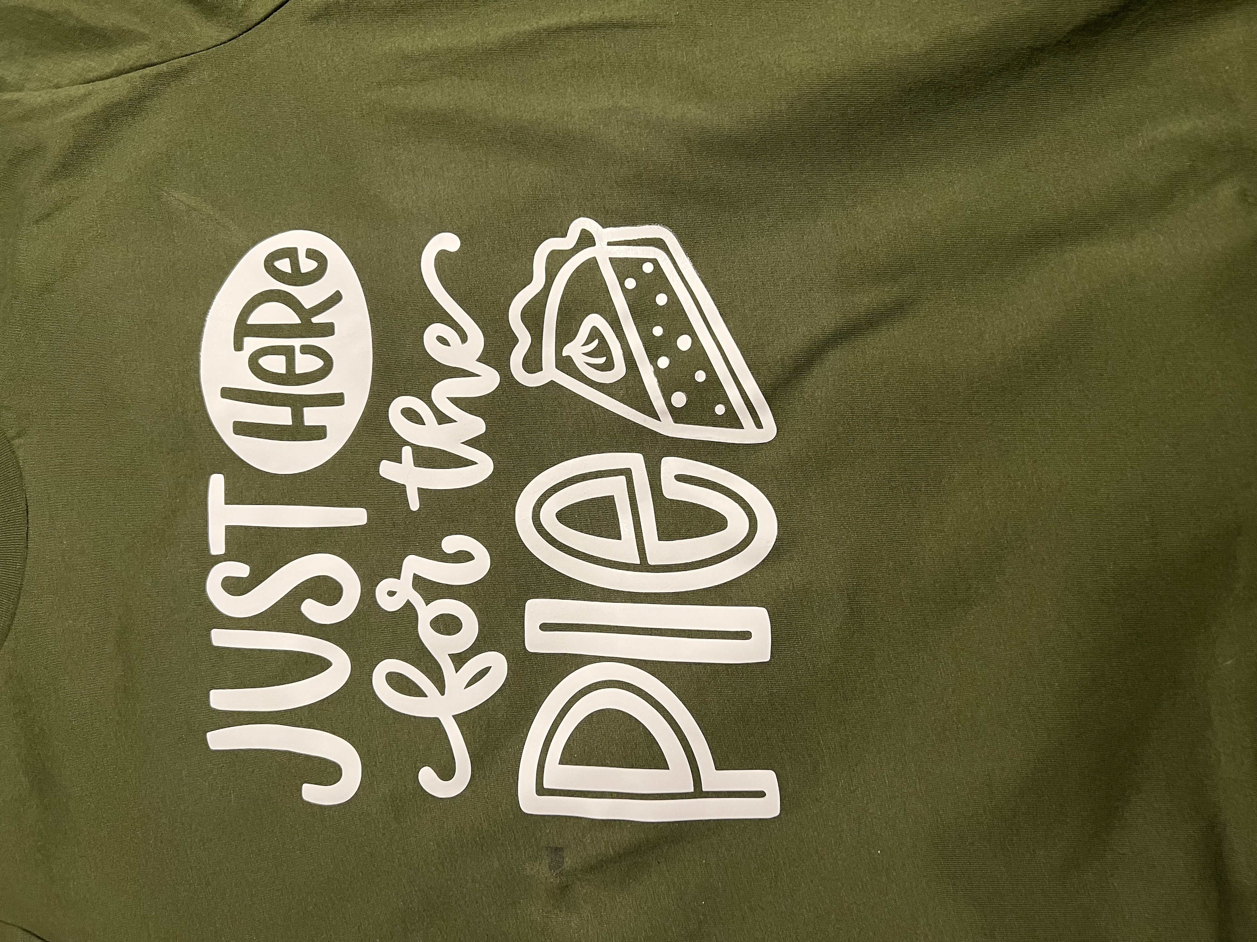 This is a hand lettered cut file. It reads, "Just Here for the Pie." Includes a doodle of a slice of pumpkin pie!