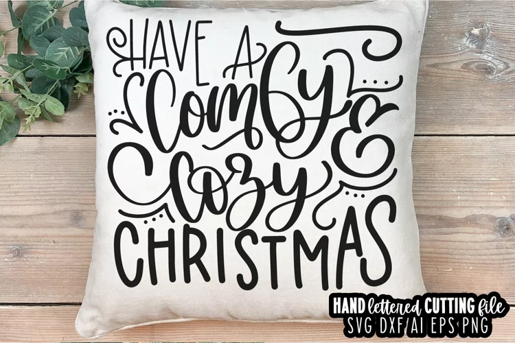 Comfy Cozy Christmas Pillow Hand Lettered SVG
