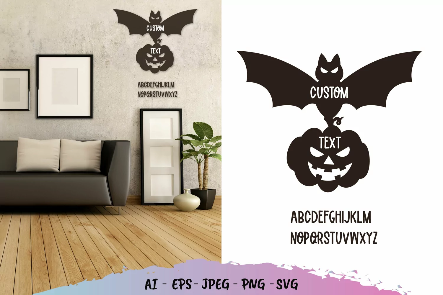 Flying Bat and Pumpkin Custom Text Wall Decoration