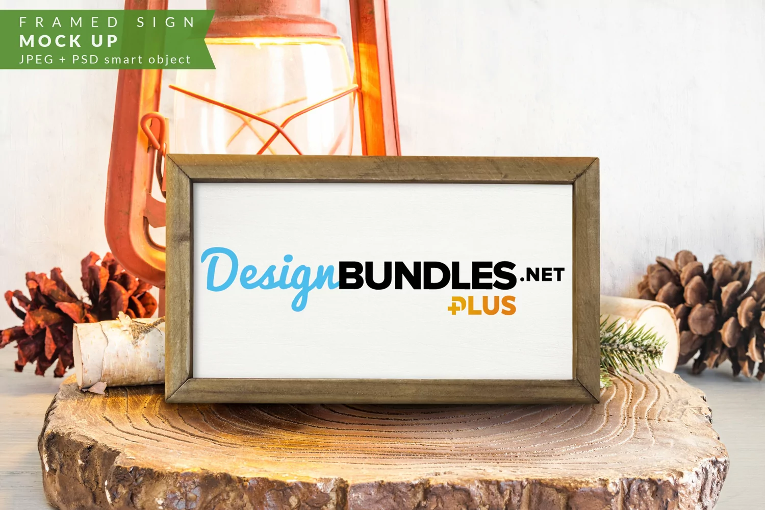 Framed Christmas Sign with pine cones and logs Mock up