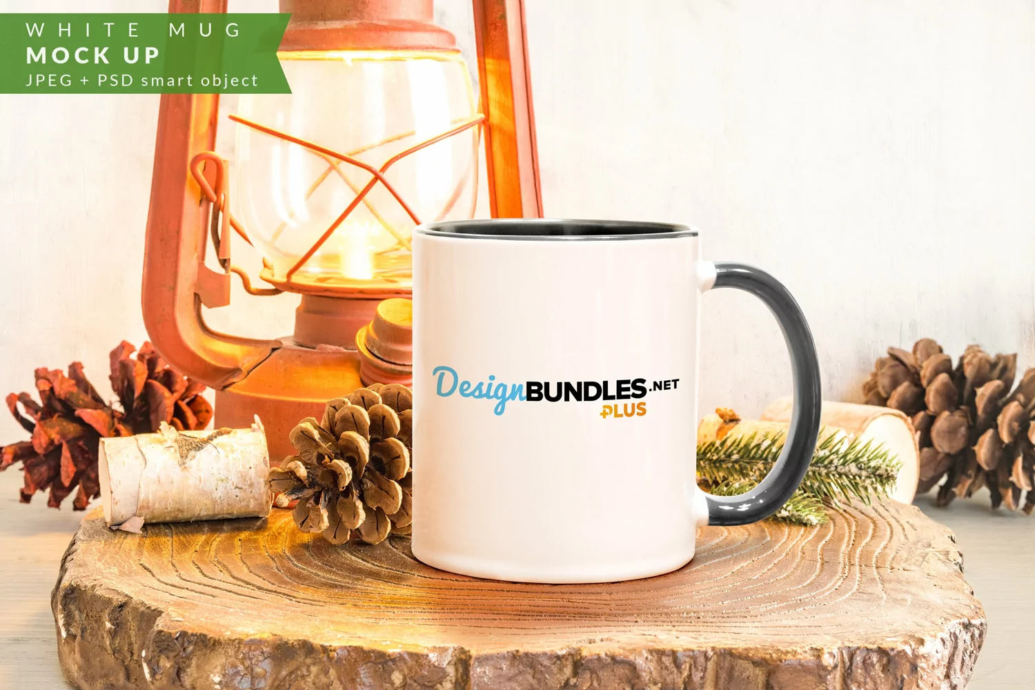 White Mug with Pine Cones and Logs | Christmas Mock up