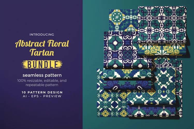 Introducing!, Abstract Floral Tartan - Seamless Pattern- Suitable for your design needs, All elements on this template are editable with adobe illustrator! Editable and Layered"