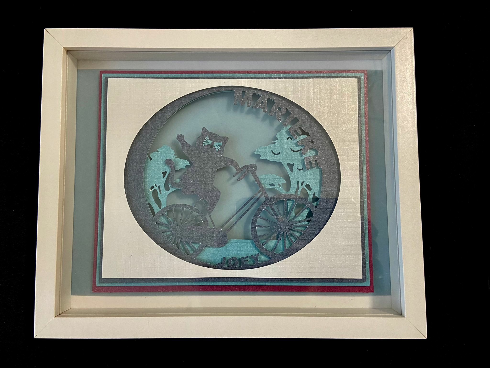 3D Shadowbox Cat Riding A Bicycle Layered Papercut