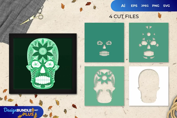 3D Shadowbox Green Sugar Skull Layered Papercut