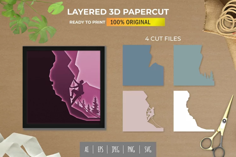 3D Papercut Man Doing Rock Climbing Layered Template