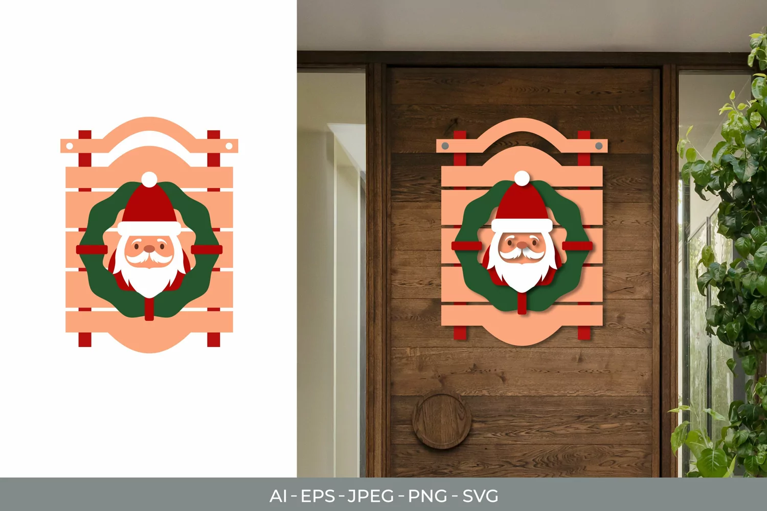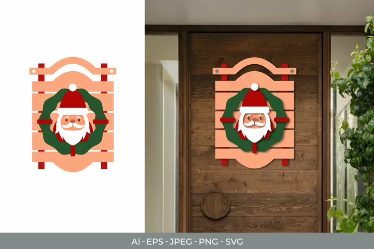 Santa and Wreath on The Board Door Decoration