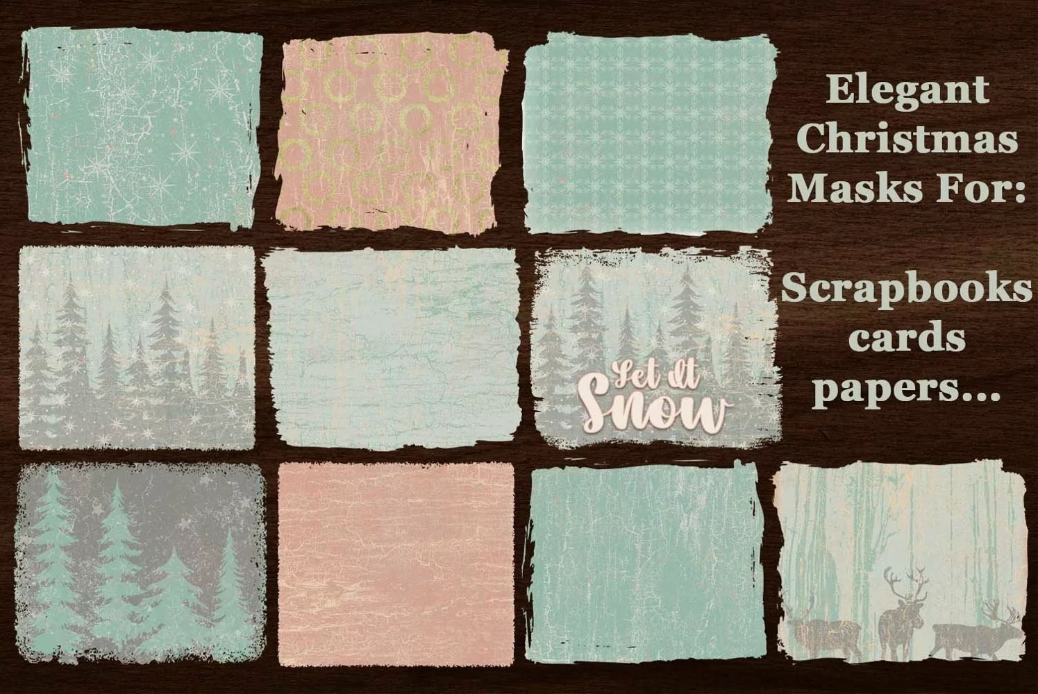 Just check out these 10 beautiful clipping masks. They're perfect for wintertime crafts and scrapbook page layouts. They'll make wonderfully festive backdrops for sublimations ideas, too. Easy to use, square designs provides for more versatility.