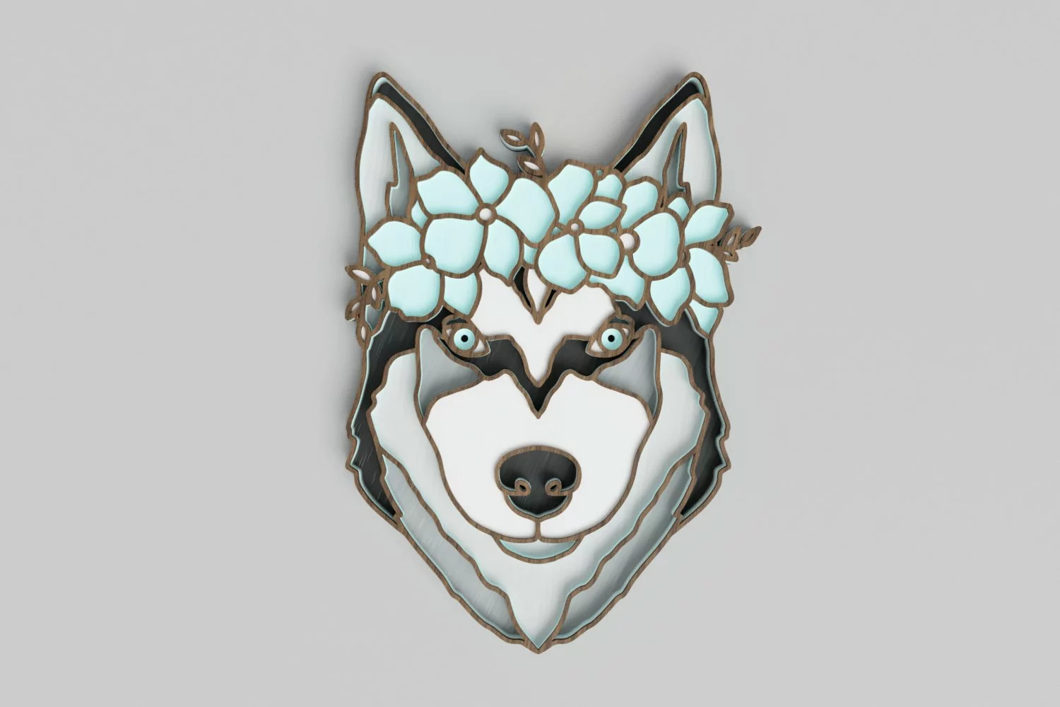 Digital multilayer file ( 6 layers), Floral dog decor, specially prepared for laser cutting, paper cutting, cricut, CNC router, as well as other cutting machines.