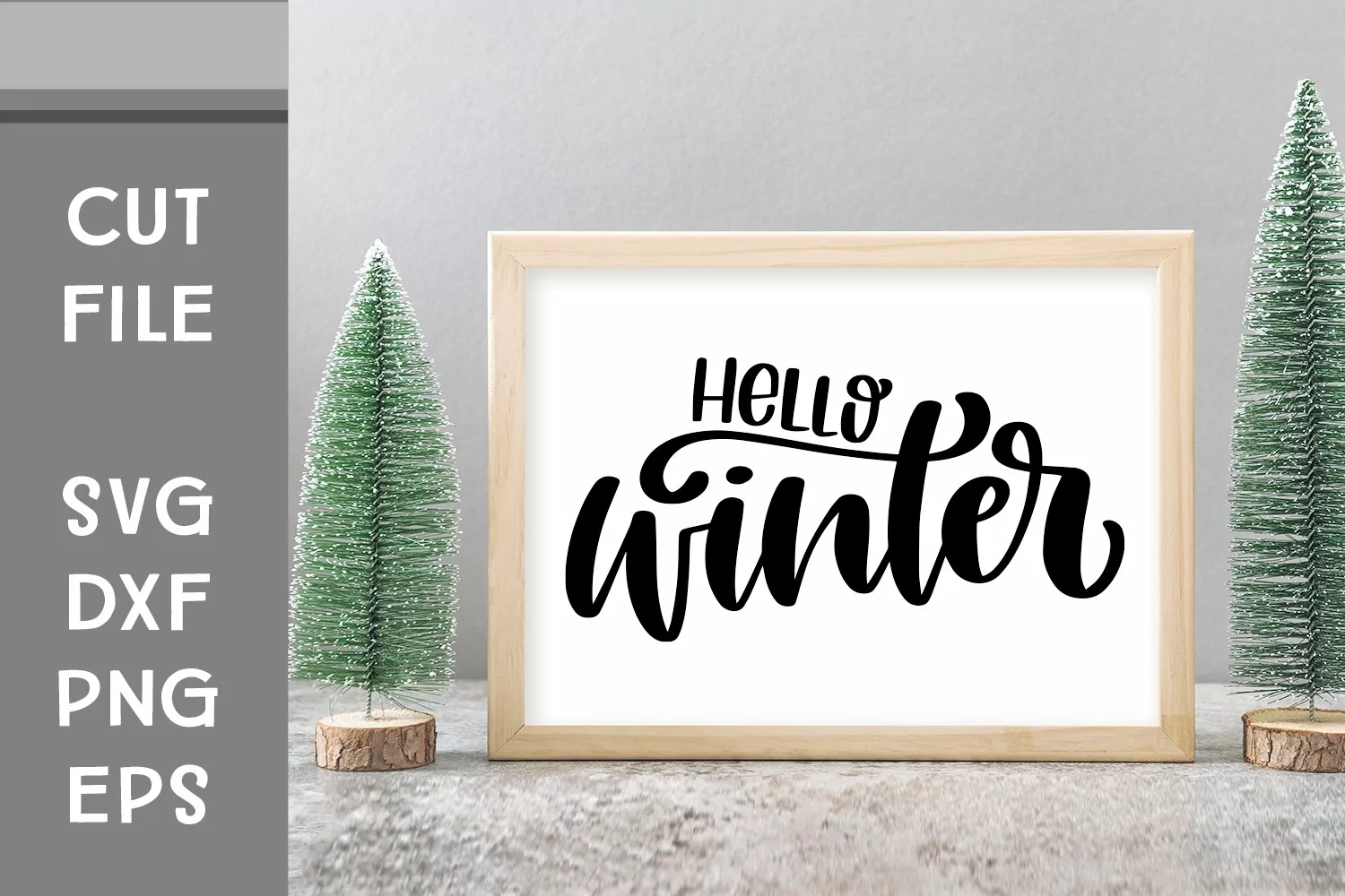 This is a hand lettered cut file. It reads, "Hello Winter."