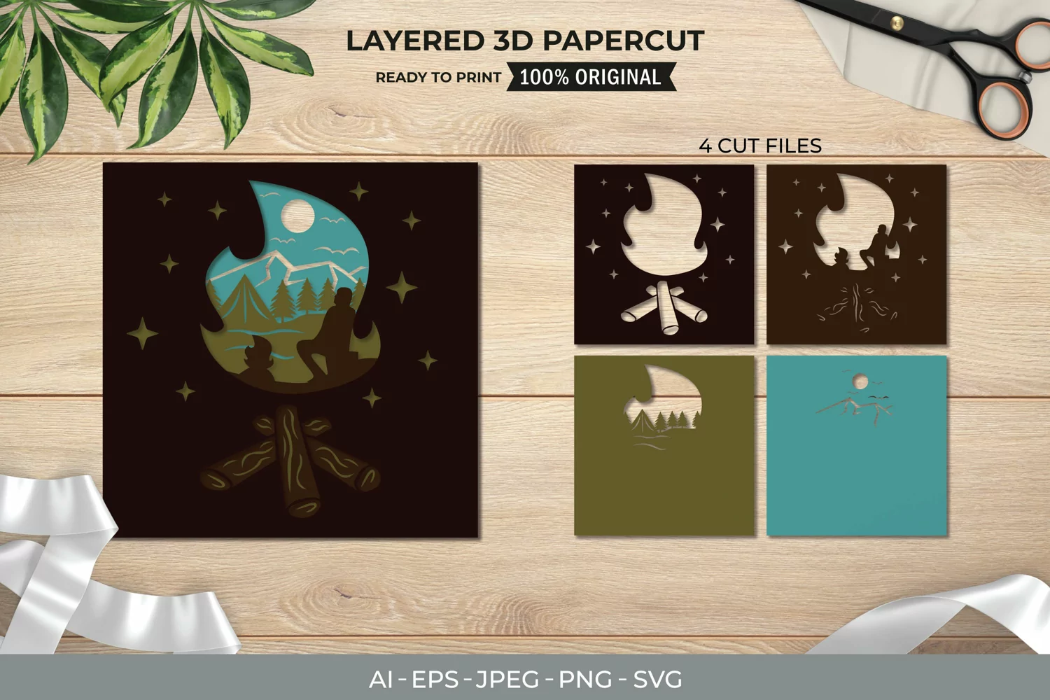3D Shadowbox Camping in Bonfire Layered Papercut