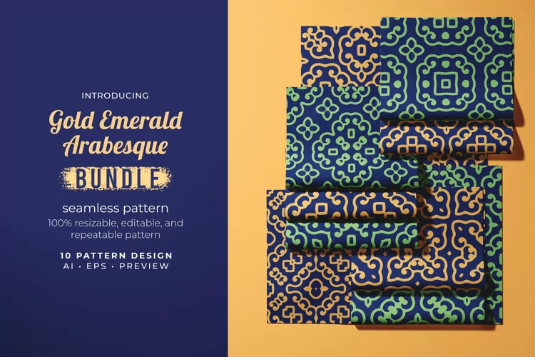 Introducing!, Gold Emerald Arabesque - Seamless Pattern- Suitable for your design needs, All elements on this template are editable with adobe illustrator! Editable and Layered"