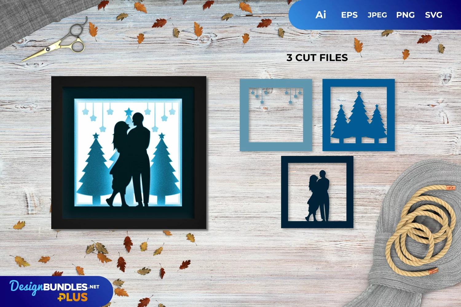 3D Shadowbox Couple Celebrating Christmas Layered Papercut