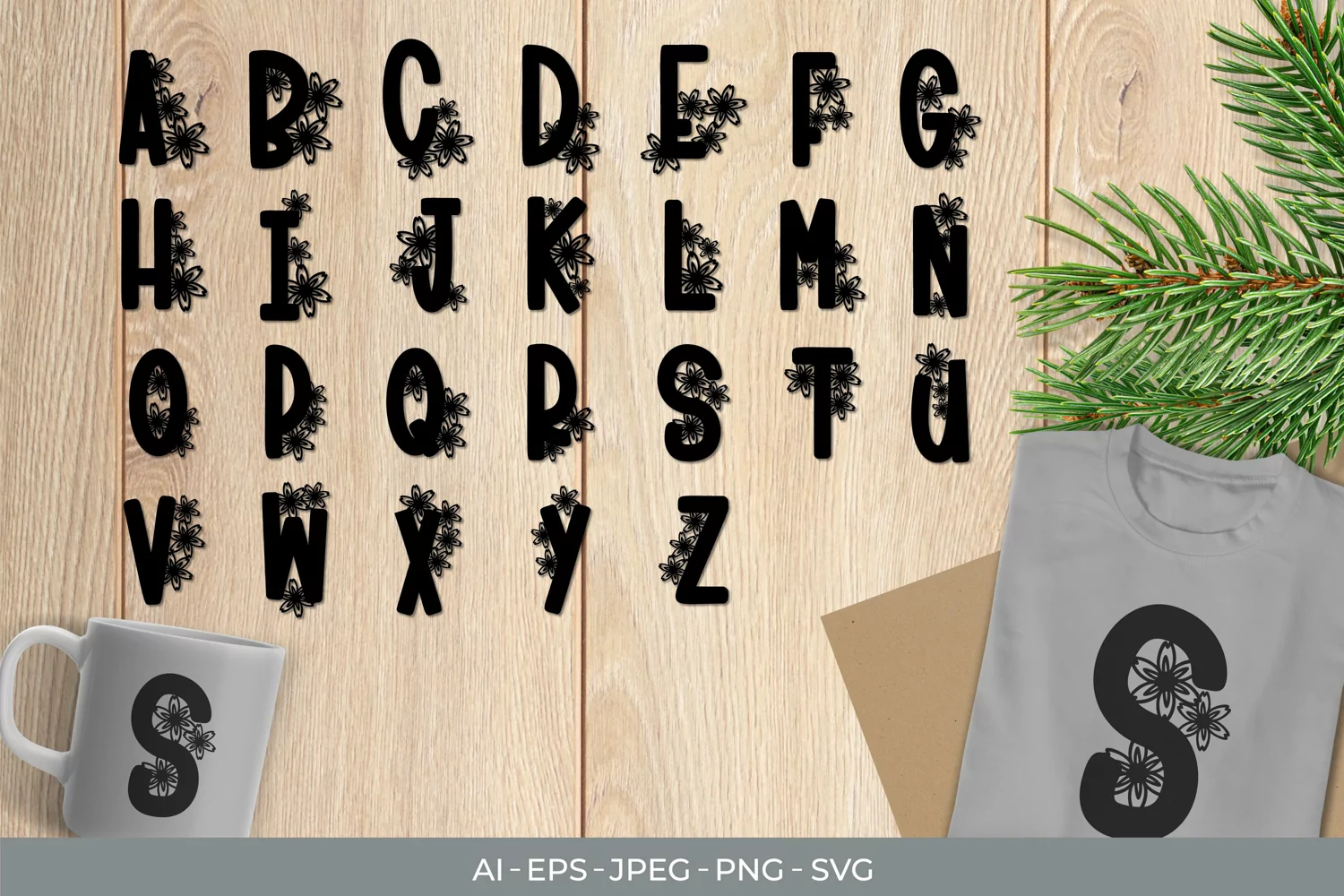 Alphabet Monogram Decorated with Flowers Sublimation Set