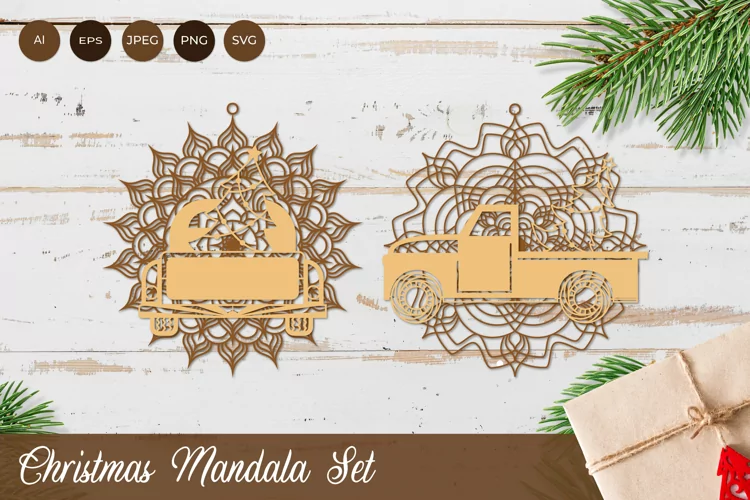 Truck and Mandala, Layered Christmas Tree Ornament Set